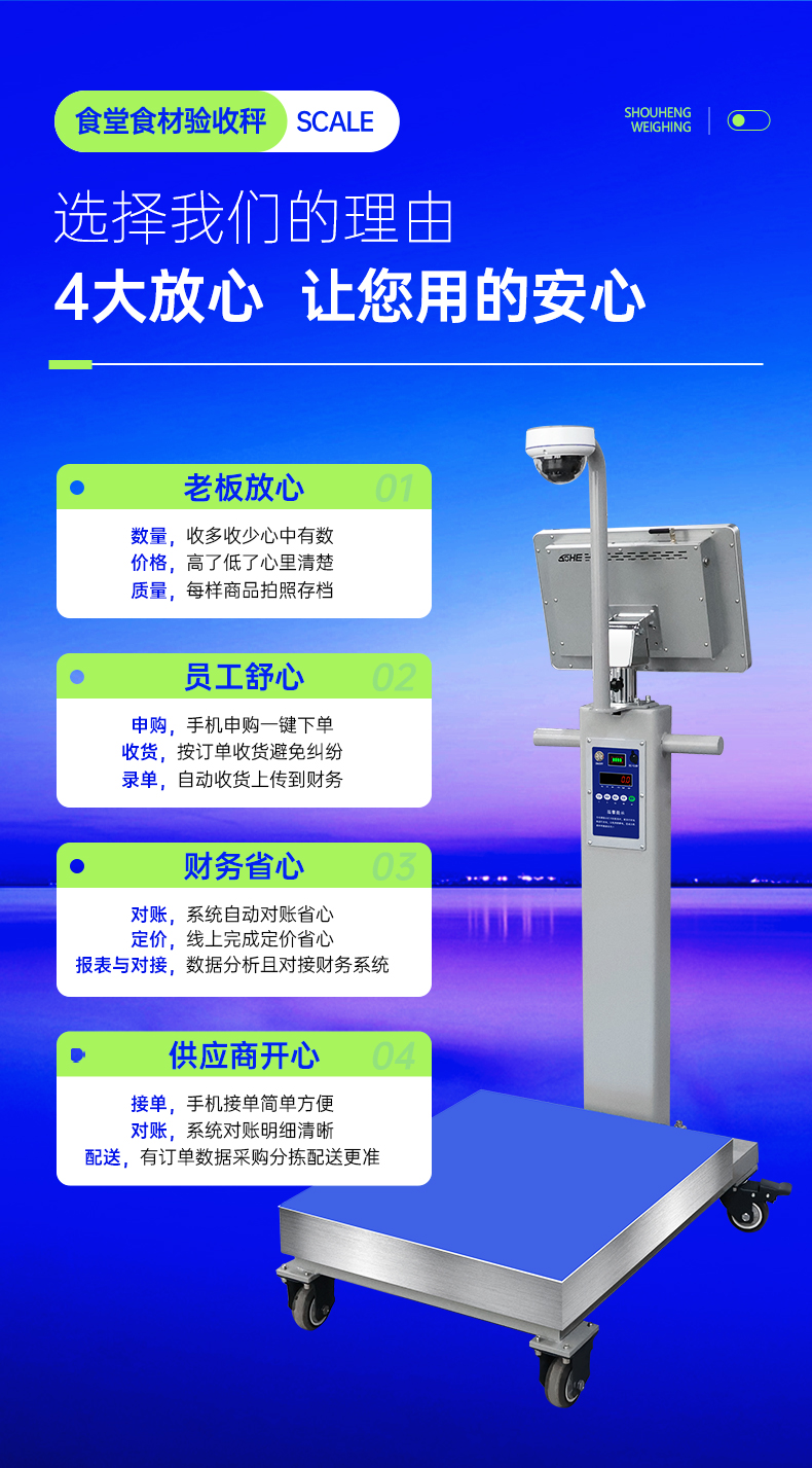 食堂是集體用餐的核心場(chǎng)所,食品安全與食堂驗(yàn)收直接關(guān)系師生與職工健康;驗(yàn)收秤作為計(jì)量與溯源關(guān)鍵工具,是守住數(shù)量關(guān),成本關(guān)與合規(guī)關(guān)的第一道防線。智能驗(yàn)收秤以數(shù)字化,標(biāo)準(zhǔn)化,可追溯能力。重構(gòu)驗(yàn)收流程,管控食安風(fēng)險(xiǎn),提升運(yùn)營(yíng)效率,成為校園,企事業(yè)單位食堂守護(hù)“舌尖安全”的核心裝備。