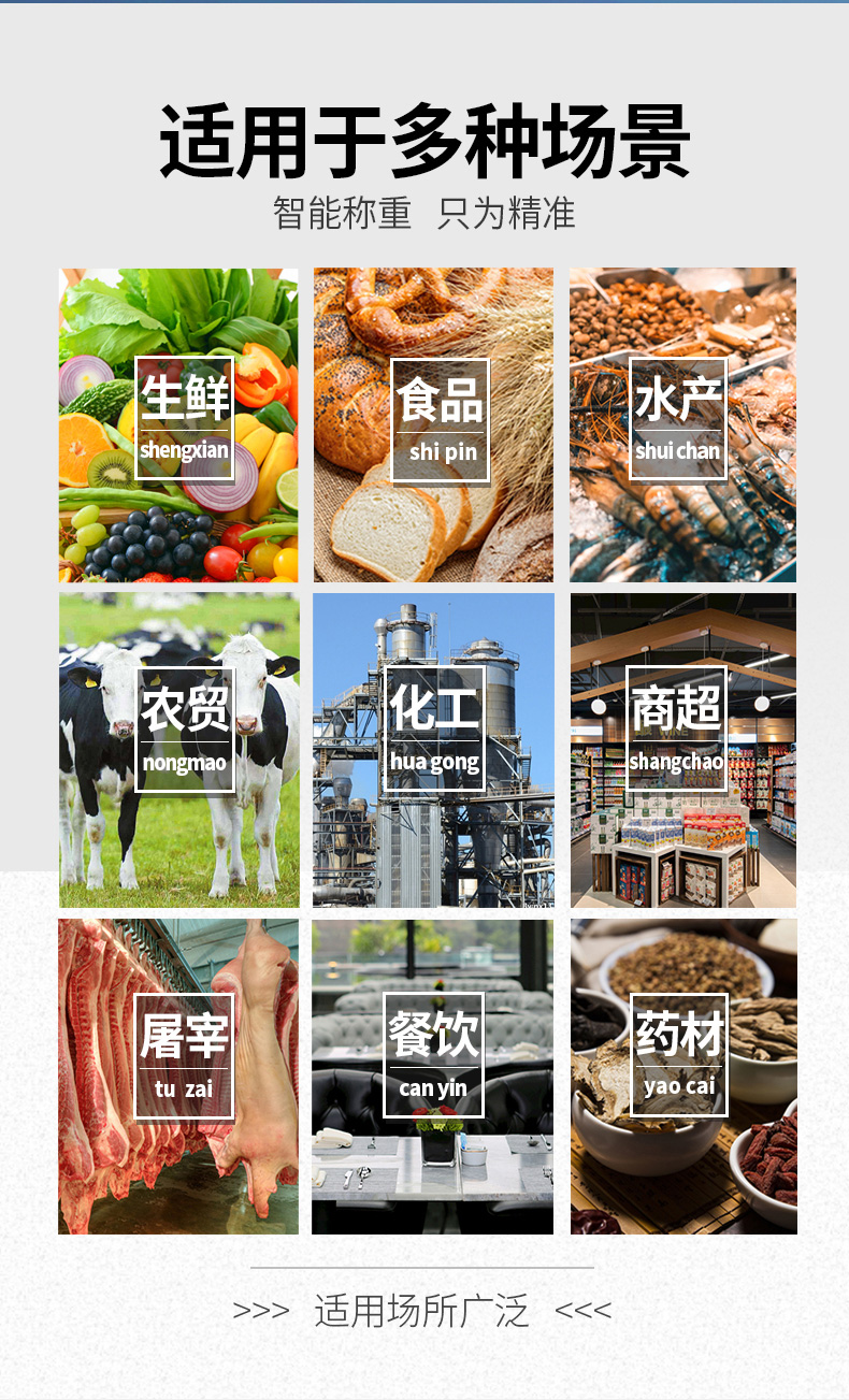 商超連鎖、農(nóng)貿(mào)市場、生鮮配送分揀、加工工廠、快遞出庫、生物醫(yī)藥、畜牧屠宰 |